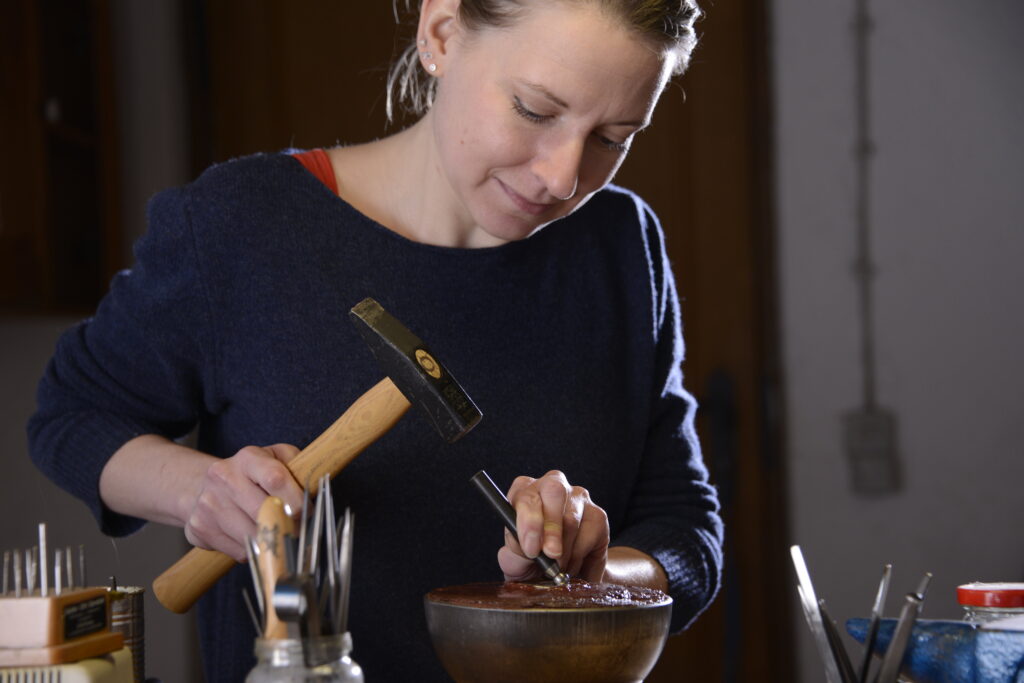 Die Form des Punzens richtet nach der Form und Oberflächenstruktur der gewünschten Ziselierung.